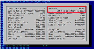 BiBi-Windows Wiper menunjukkan malware tersebut di-compile pada 21 Oktober 2023 menggunakan Visual Studio 2019, hanya 14 hari setelah perang Israel-Palestina dimulai. Sampel malware tersebut adalah Windows portable executable (PE) x64 dengan ukuran file 203 KB.