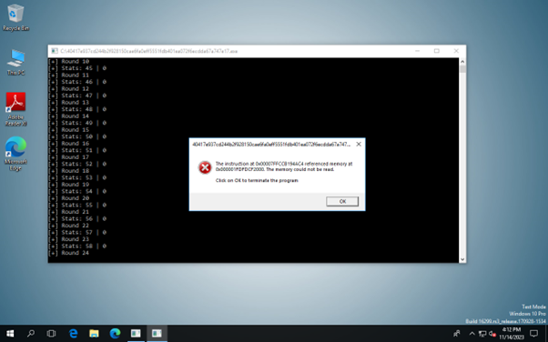 Jika berhasil dijalankan pada sistem operasi Windows, malware ini pertama kali akan memeriksa arsitektur prosesor dan jumlah threads sistem korbannya. Untuk tindakan penghancuran secepat mungkin, malware menjalankan 12 threads dengan delapan core prosesor. Selama eksekusi, wiper mengeluarkan hasilnya ke konsol.